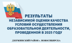 Результаты независимой оценки качества условий осуществления образовательной деятельности, проведенной в 2025 году - общий результат 84,9 баллов по 5 критериям. Место в рейтинге ОУ Дзержинского района - 13.